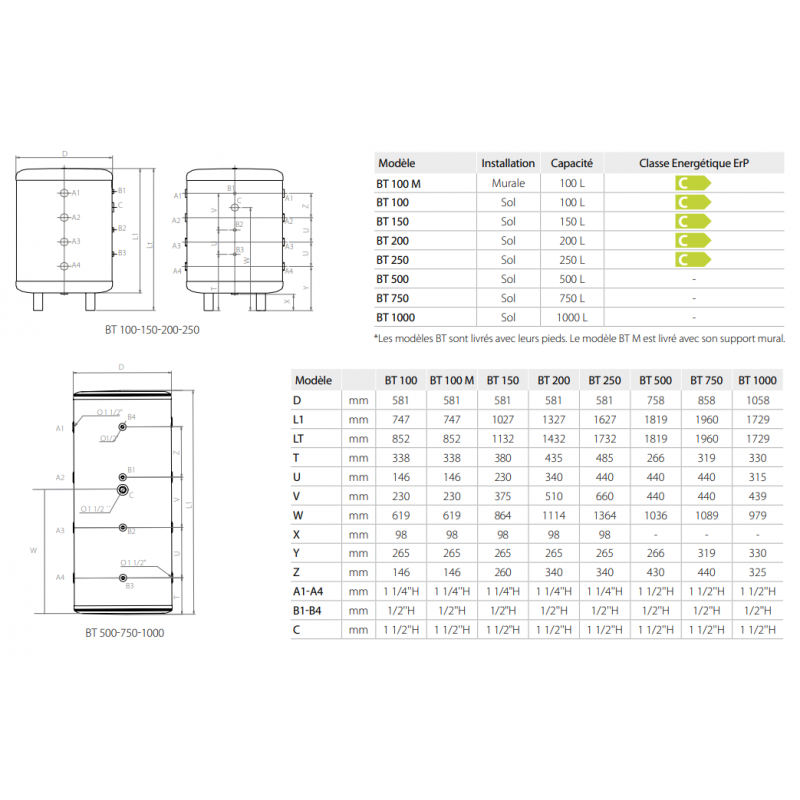 La gamme BT est une gamme de ballon tampon de 100 L. à 1000 L. destinée à l'utilisation dans des circuits fermés de réfrigération (Pompe à Chaleur) et /ou circuits fermés de chauffage.