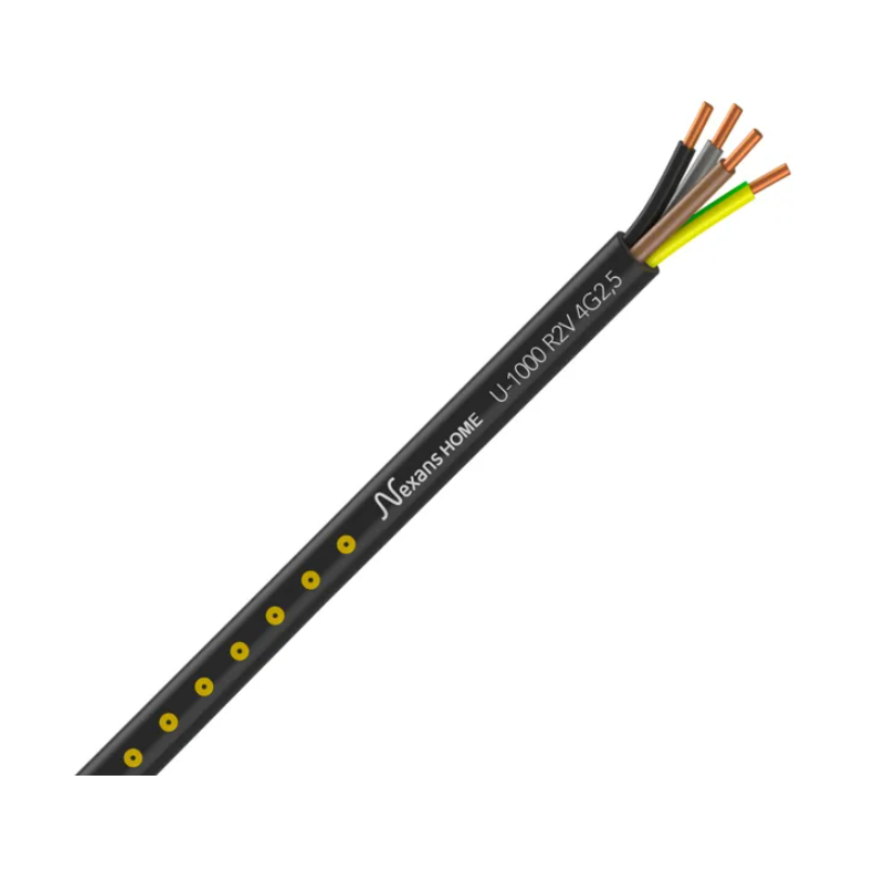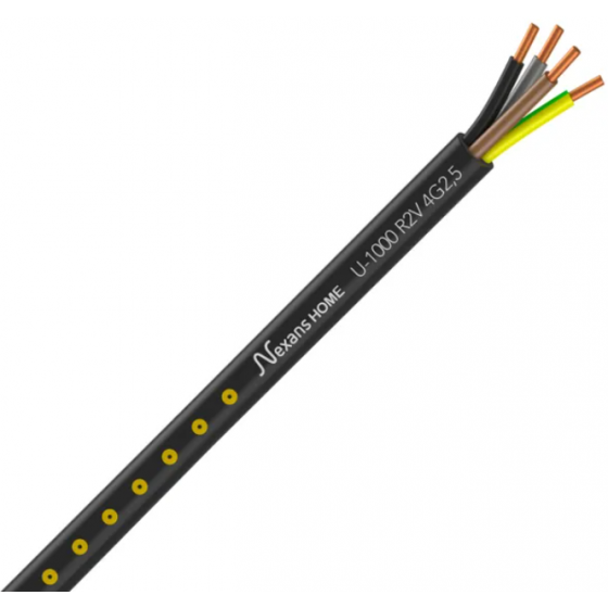 Câble électrique rigide CR 1000 R2V noir 4G 2.5 mm² Nexans - 50 mètres