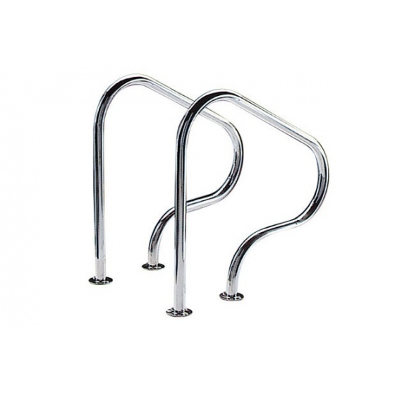 Sorties de bain avec jeu de 2 mains courantes, tube Ø 43 mm en acier inox AISI-316 poli. Les sorties de bain à platines sont livrées avec joints, chevilles et tire-fonds.