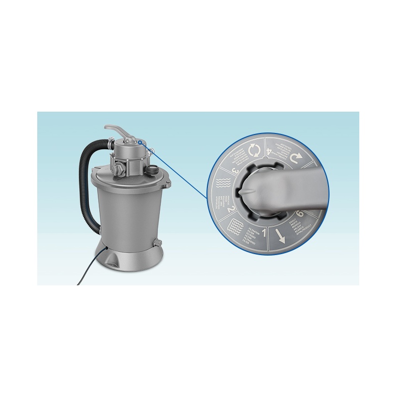 Ce groupe 2 en 1 associe le pompage et la filtration pour conserver l’eau de votre bassin propre et saine. Les impuretés sont retenues dans le média filtrant à l’intérieur de la cuve. Le filtre est muni d’un préfiltre qui retient les particules excessivement grandes pour éviter d’endommager la pompe. Sa vanne multivoie (6 voies), permet de réaliser diverses fonctions: auto nettoyage, filtrage, vidange, rinçage, …