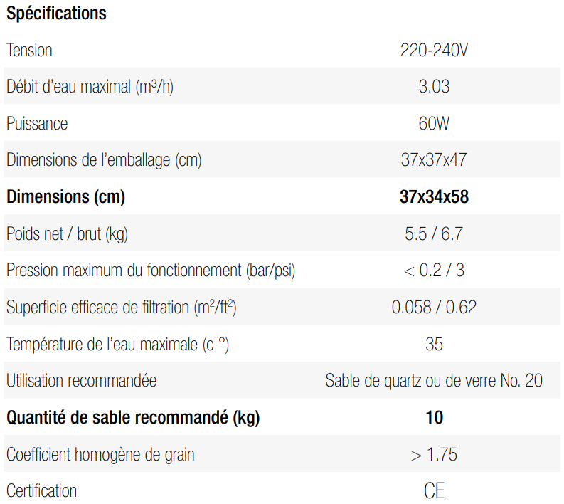 Ce modèle est parfaitement adapté pour équiper les piscines hors sol jusqu’à 20m3.