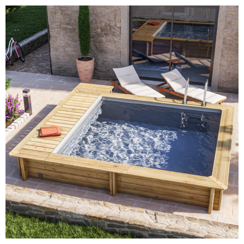 Piscine bois BWT Urbaine 4,20 x 3,50 x 1,33 avec couverture automatique - 27181614