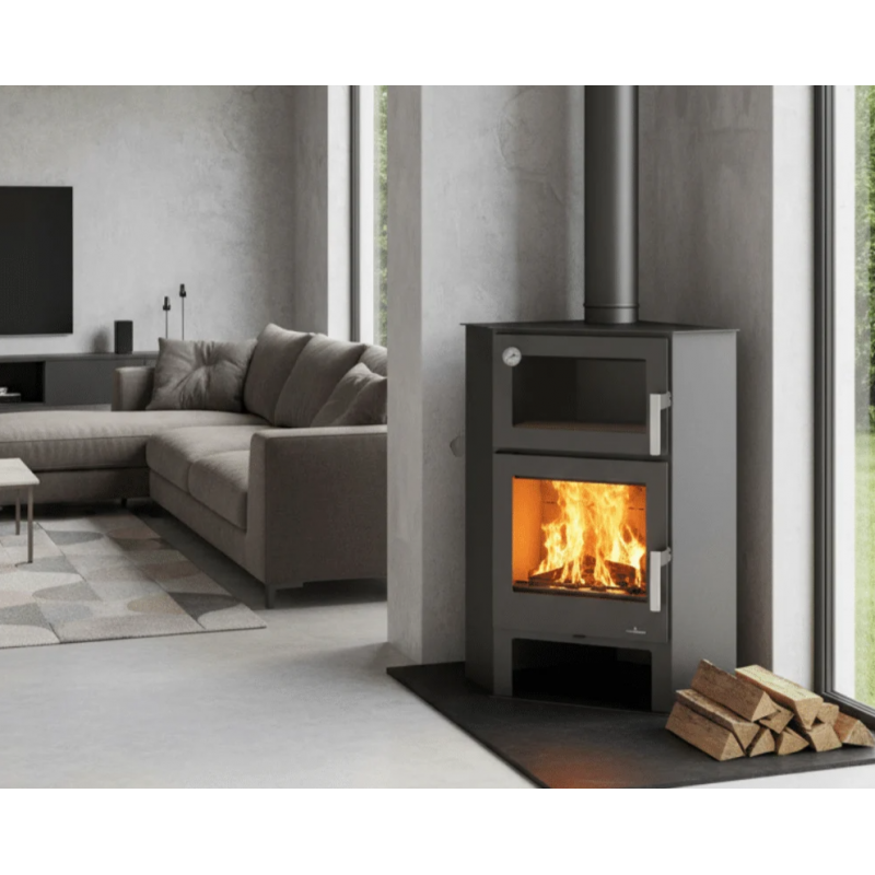 Offrez à votre intérieur une solution de chauffage performante et polyvalente avec le poêle à bois LERMA-H. Conçu pour allier chaleur efficace et plaisir de la cuisine au feu de bois, ce modèle se distingue par son four intégré et ses technologies avancées de combustion.