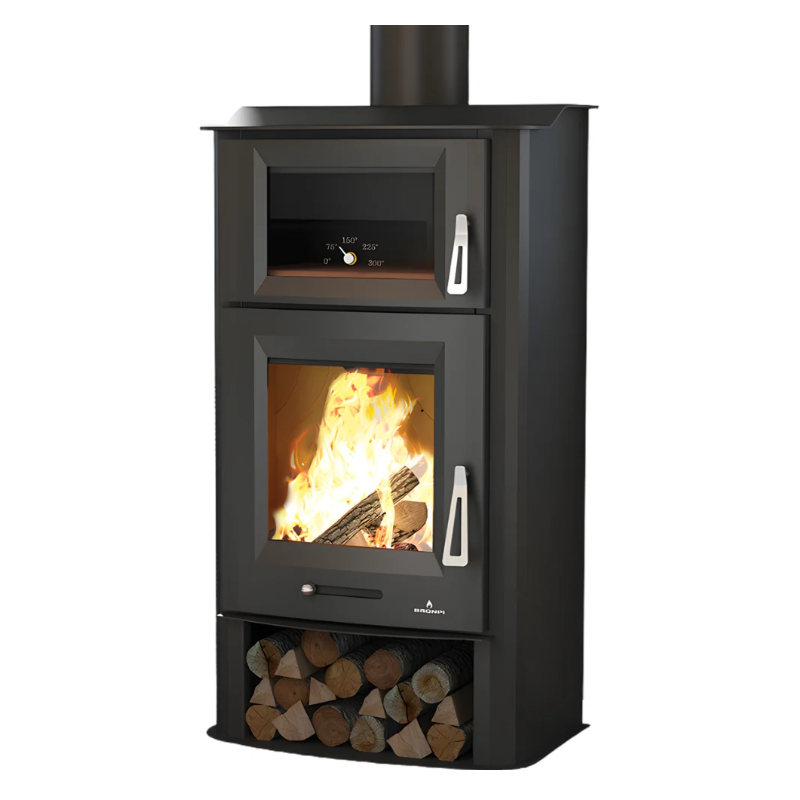 Poêle à bois Bronpi TUDELA anthracite 12 kW avec range-bûches et four