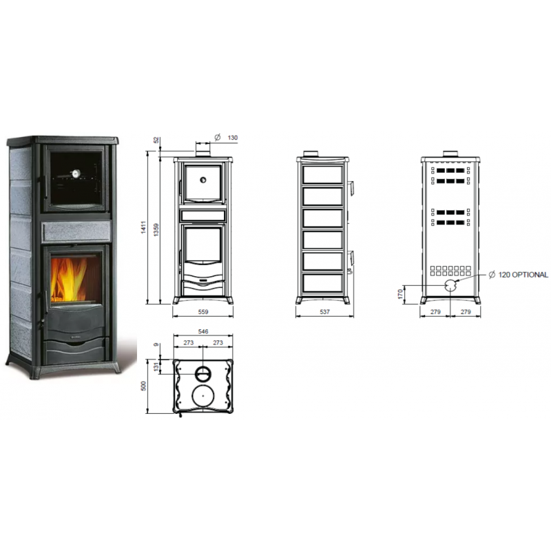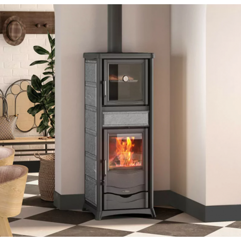 Poêle à bois fonte Nordica Rosella Plus Forno.165 Petra 9,4 kW en pierre naturelle - 3009910