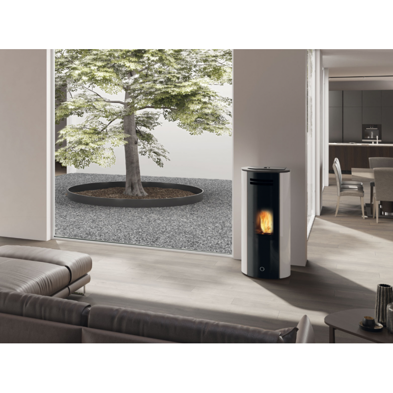 Poêle à granulés Edilkamin étanche EK63 Spy 110 Plus Evo 3.7 à 10.5 kW blanc avec flanc en verre - 818010