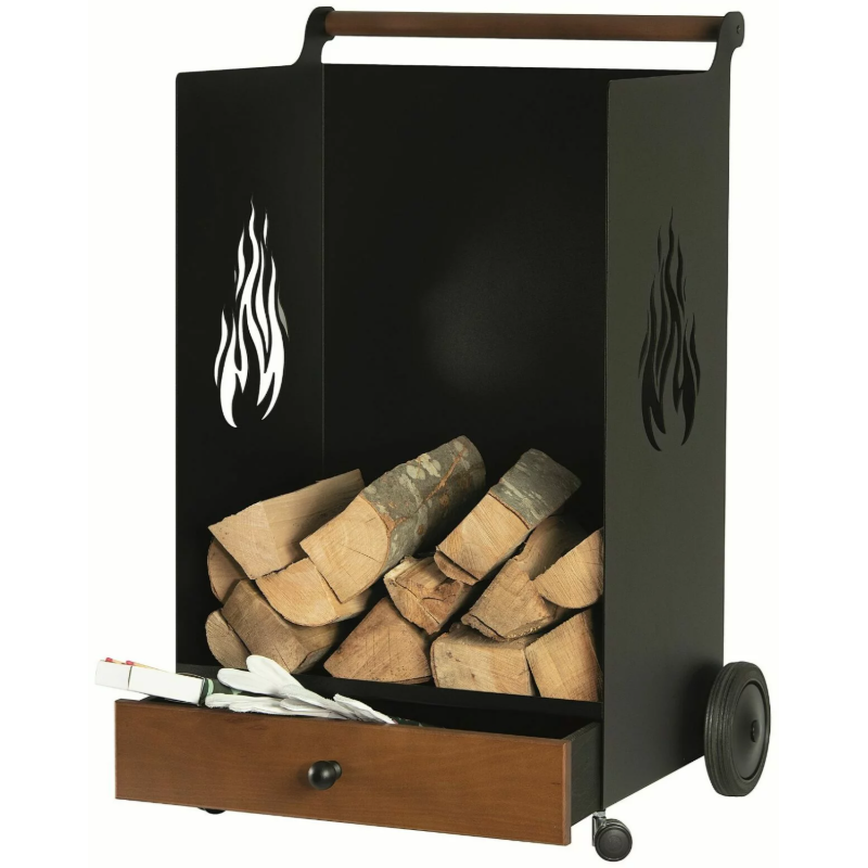 Porte-bûches Juza Tubest noir sur roulette 42 x 59 x 87 cm - 5650500F