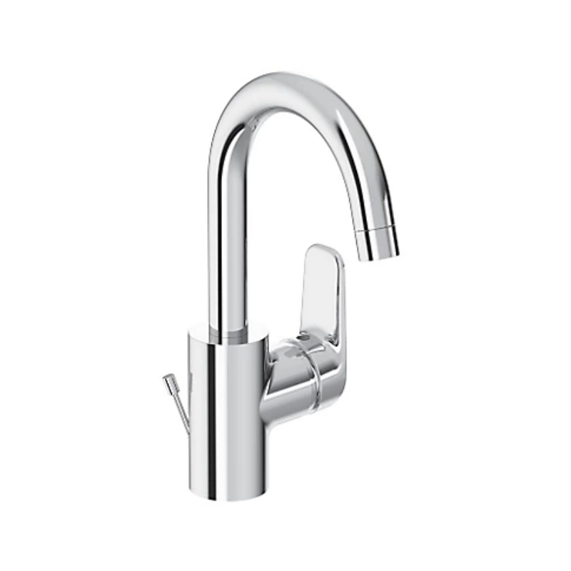 Mitigeur lavabo monotrou bec haut Okyris Porcher à tirette et bonde polypropylène - D0572AA