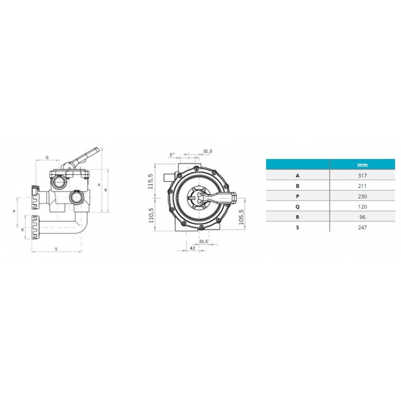 Vanne Multivoies classic plus 2 Noire complète 2 " Side - 74862