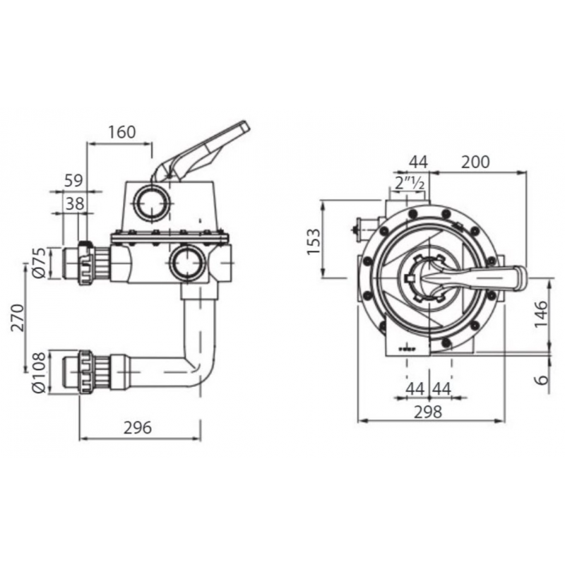 Vanne Multivoies 2"1/2 Side Magnum avec montage Ø 75 mm - 24837