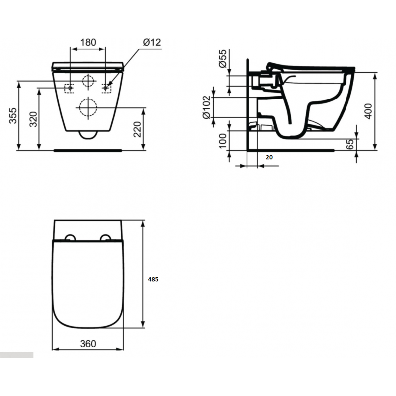 Pack cuvette suspendue Ideal Standard i Life S RimLS Plus gain de place blanc brillant - T500101